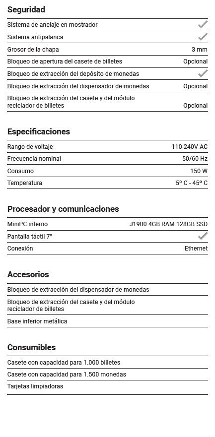 De acuerdo a las necesidades del negocio, puede ser implementado en modo: atendido o desatendido, es decir, usado solo por el cliente o con asistencia.